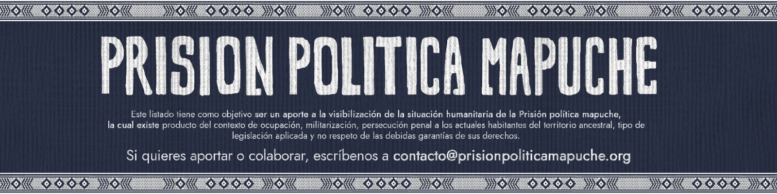 Este listado tiene como objetivo ser un aporte a la visibilización de la situación humanitaria de la prisión política mapuche. Producto del contexto de ocupación, militarización, persecución penal a los actuales habitantes del territorio ancestral, tipo de legislación aplicada y no respeto de las debidas garantías de sus derechos. Factores que determinan la existencia de una gran cantidad de personas mapuche encerradas en las cárceles del Estado chileno, y de manera cada vez más común en el argentino.